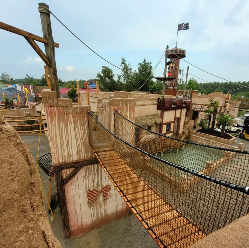 In summer 2024, Forêt Adrénaline Construction partnered with Kingoland park to bring a brand-new attraction to life: The Pirates’ Hideout – Splash Adventure.
