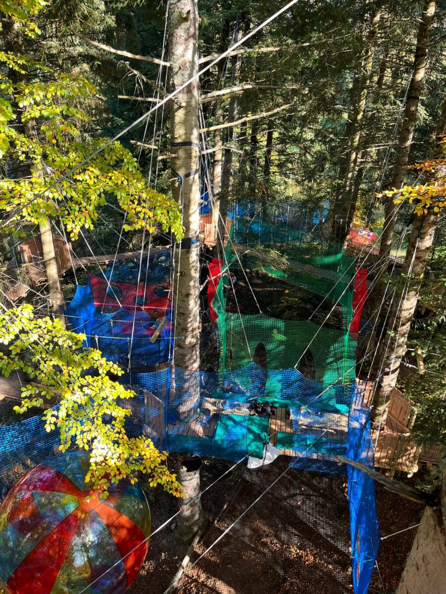 Nous avons installé un parcours TrampÔforest® de 8 salles qui peut être accessible par différents points, grâce à des cheminements en bois fabriqués par une entreprise Slovène.