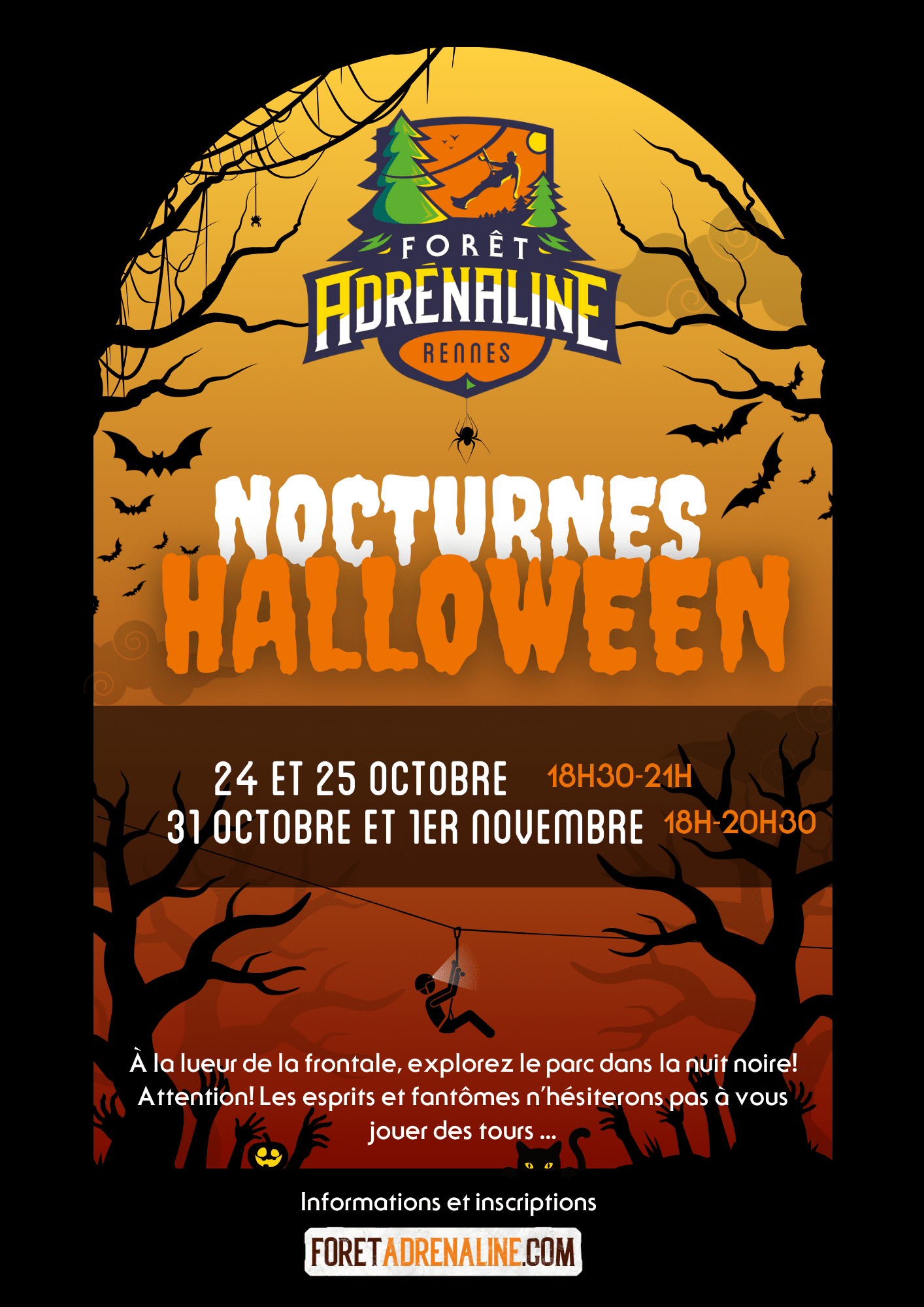 🎃🌙 Nocturnes Halloween 🌙🎃 Oserez-vous affronter la forêt… à la nuit tombée ? 😈✨Accrobranche dans l’obscurité, sensations garanties et ambiance 100% frissons ! 📅 Dates effrayantes :vendredi 24 & samedi 25 octobre🎃18h30 à 21h vendredi 31 octobre & samedi 1er novembre🎃18h à 20h30 ⚠️ Infos pratiques :Les places sont limitées → réservation obligatoire ! 🎃 Déguisements et bonbons…