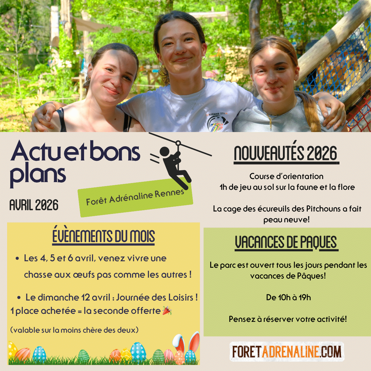 Du samedi 11 Avril au 26 Avril le parc sera ouvert tous les jours pour les vacances !
