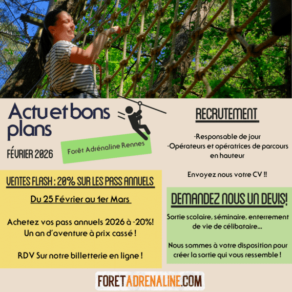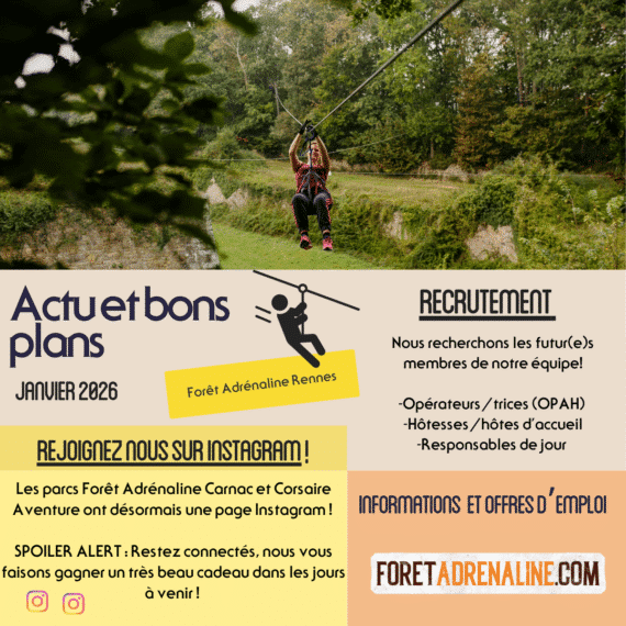 😎Recrutement : Nous recherchons les futur-es membre de notre équipe! 🌳Plusieurs postes sont à pourvoir dans plusieurs domaines : Retrouvez nos offres d’emploi en détail sur la page dédiée 🔗Réseaux sociaux : A chaque parc sa page ! Retrouvez nous sur notre page Linkedin ! Les parcs Forêt Adrénaline Carnac et Corsaire Aventure ont désormais…
