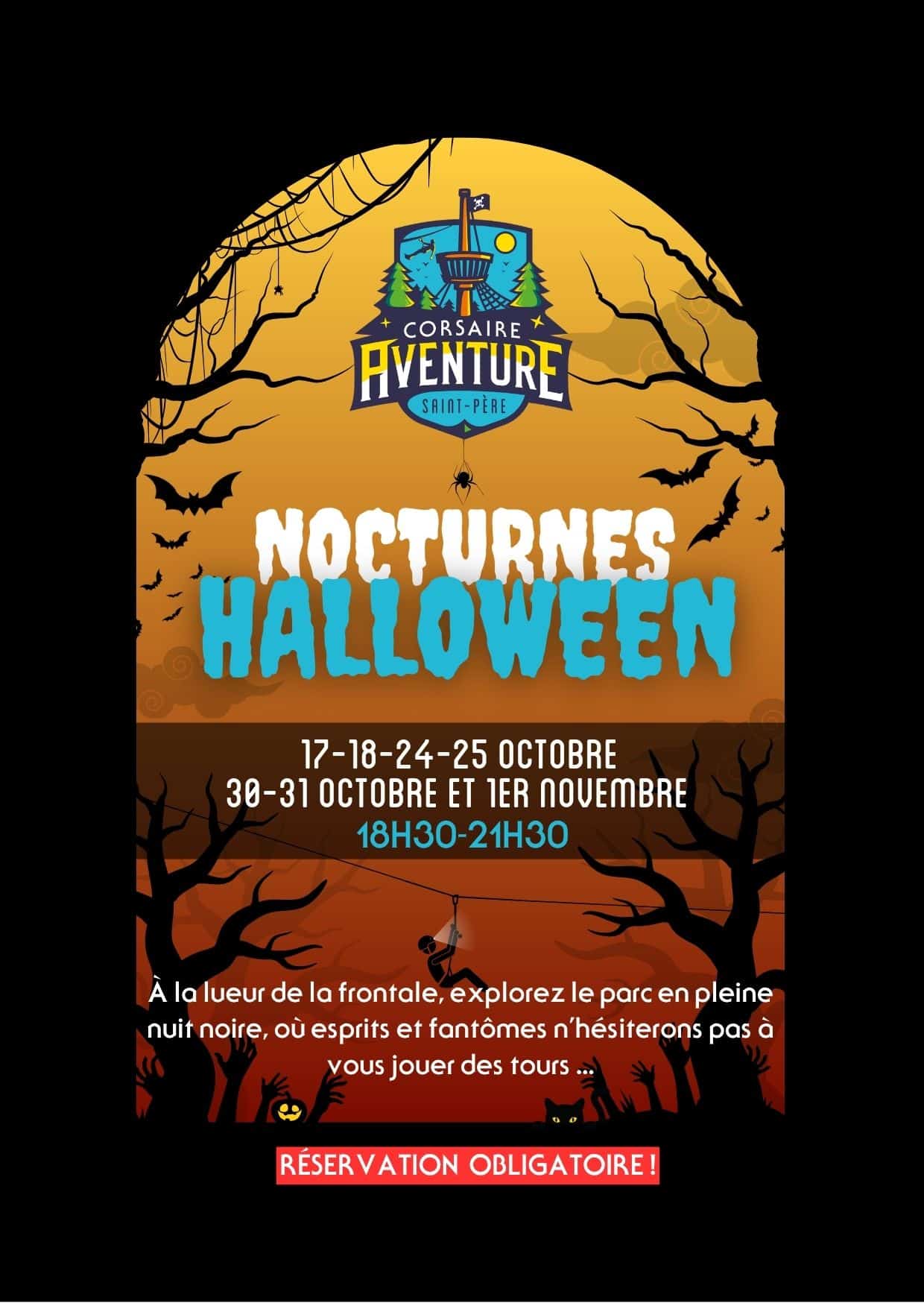 🎃🌙 Nocturnes Halloween 🌙🎃 Oserez-vous affronter la forêt… à la nuit tombée ? 😈✨Accrobranche dans l’obscurité, sensations garanties et ambiance 100% frissons ! 😈7 soirées effrayantes : 🎃 17, 18, 24, 25, 30, 31 octobre & 1er novembre→ De 18h30 à 21h30 ⚓ Deux départs possibles :👻18h30 → pour les petits mousses (et les plus prudents)💀 19h30 → pour les corsaires téméraires,…