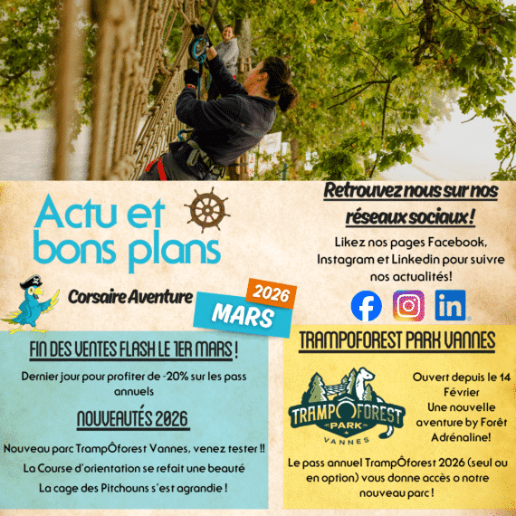 Découvrez notre nouveau parc TrampÔforestpark à Vannes ! 🌞🎉Ouvert depuis le 14 février, venez découvrir une nouvelle aventure, ludique, sportive, ou on apprends en s’amusant! 🌳Si vous avez un pass annuel TrampÔforest (seul ou en option) vous pouvez en profiter au TrampÔforestpark !! 🤩Pour plus d’informations 🌳Les nouveautés 2026 🤩🎉La cage des écureuils des Pitchouns…