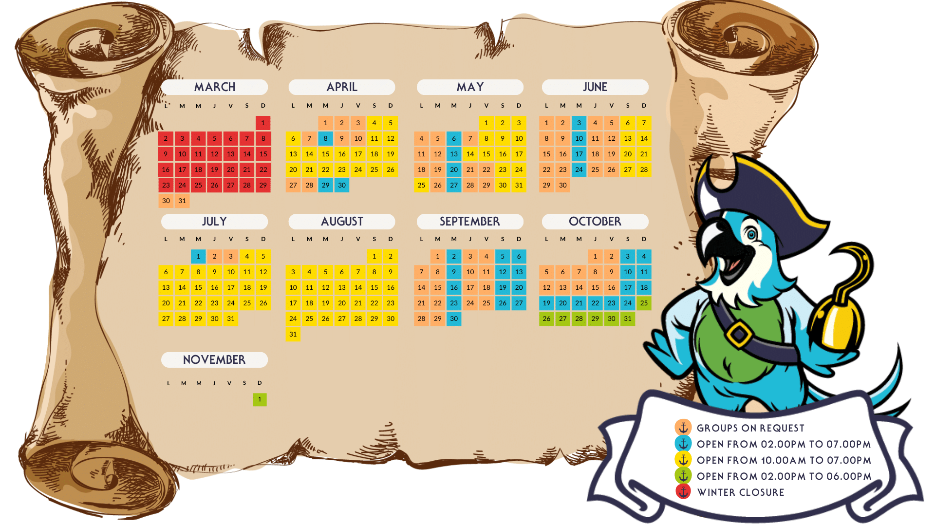 Corsaire Aventure park is closed from the 2nd of November to the end of March.